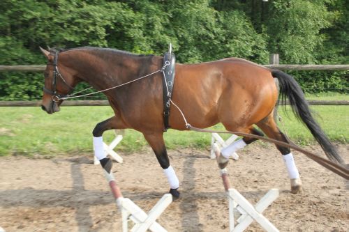 - Das Longieren über Cavaletti sollte nicht zu oft hintereinander erfolgen, sondern immer wieder durch leichtere Übungen abgewechselt werden.