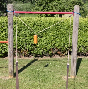 Unabhängig von der Höhe der Longenbefestigung, muss die äußere Longe immer tief um das Hinterbein geführt werden. Deswegen ist bei höherer Longenführung eine Umlenkung notwendig. Hierfür verwendet man leichtgängige Rollen.