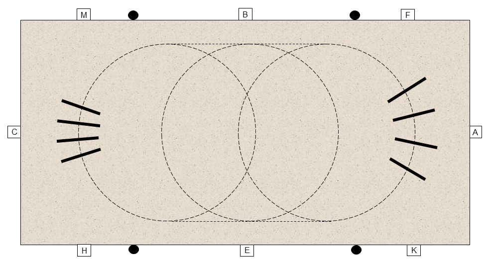 Besonders der Übergang vom Galopp zum Schritt bzw. vom Schritt in den Galopp eignet sich zur Vorbereitung auf den einfachen Galoppwechsel. - Zirkel verkleinern / vergrößern