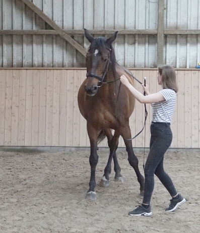 Für den Anfang sollte man sich mit wenigen Schritten begnügen und auf keinen Fall das Loben vergessen. Wenn das Pferd grundsätzlich weiß, was von ihm erwartet wird, kann auf der anderen Hand geübt werden und im fortgeschrittenem Stadium auch auf freier, gerader und gebogener Linie. Ausbinder und Kappzaum werden mit der Zeit überflüssig und können durch eine übliche Trense ersetzt werden.