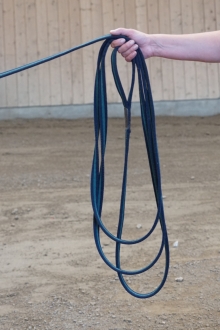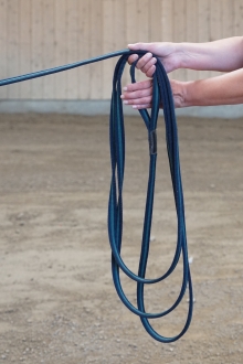 - Longe Schlaufe für Schlaufe in die linke Hand übernehmen (siehe: Handhabung).