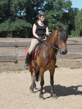 Der innere Schenkel liegt in vorwärts - seitwärtstreibender Position etwas hinter dem Gurt und treibt im Schritttakt.