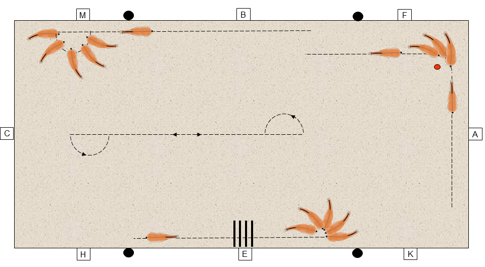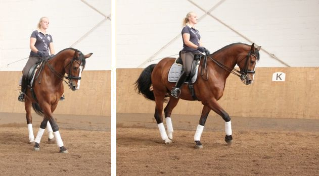 - Der Reiter muss durch seine wechselseitig treibenden Unterschenkel beide Hinterbeine im Schritttakt halten.