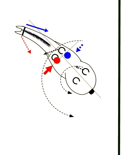 Die einseitig belastende Gewichtshilfe durch den inneren Gesäßknochen ergibt sich von selbst, wenn der Reiter den äußere Schenkel aus der Hüfte heraus zurücknimmt.
