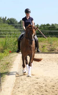 - Wenn das Pferd dem inneren Schenkel ausweicht, muss zunächst wieder mehr vorwärts geritten werden.