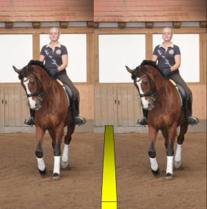 - Die Lektion wird mit einem zu großen Abstellwinkel und ohne Längsbiegung geritten (vergleichbar dem Schenkelweichen).