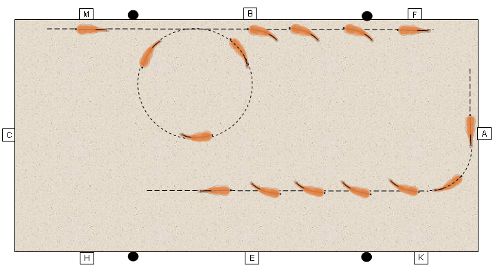 Aus dem Zirkel wechseln unter Beibehaltung von Stellung und Biegung ist nicht nur eine anspruchsvolle Übung, sie trägt auch wesentlich zur Verbesserung der symmetrischen Längsbiegung und damit zum Geraderichten bei.
