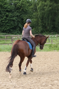 Aber auch auf geraden Linien kann Stellung und Biegung gefordert werden. Zum Beispiel bei allen Seitengängen oder bei der Hinterhandwendung.