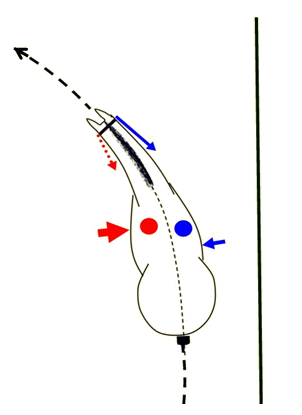 1) Anatomisch ist eine gleichmäßige, seitliche Biegung der Körperlängsachse eines Pferdes nicht möglich, weil die Wirbelsäule über ihre gesamte