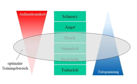 angstbesetzter Reiz fast immer mit einer Abwehrreaktion des Pferdes verbunden. Bei nicht exaktem Timing der Belohnung besteht daher die Gefahr, diese nicht erwünschte Abwehrreaktion zu verstärken statt sie zu unterdrücken.